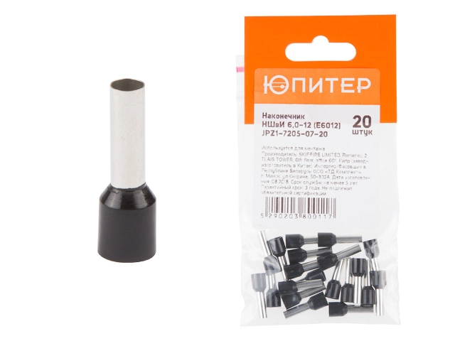 Наконечник-гильза НШвИ 6,0-12 (E6012) (20 шт) Юпитер (с изолированным фланцем) (ЮПИТЕР) наличный и безналичный расчет