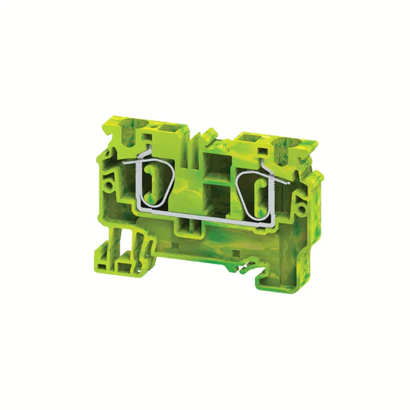 Заземляющая пружинная клемма на номинальное сечение проводника 6 кв. мм. Клеммы заземляющие с выводами безвинтового типа с пружинными зажимами с функцией PE предназначены для электрического и механического соединения медных проводников с DIN-рейкой в распределительных шкафах и щитах САУ. Клеммы позволяют легко присоединить круглые медные проводники, номинальным сечением от 0,2 до 16 кв.мм, обеспечивая надежный контакт и простоту сборки электрических схем.
