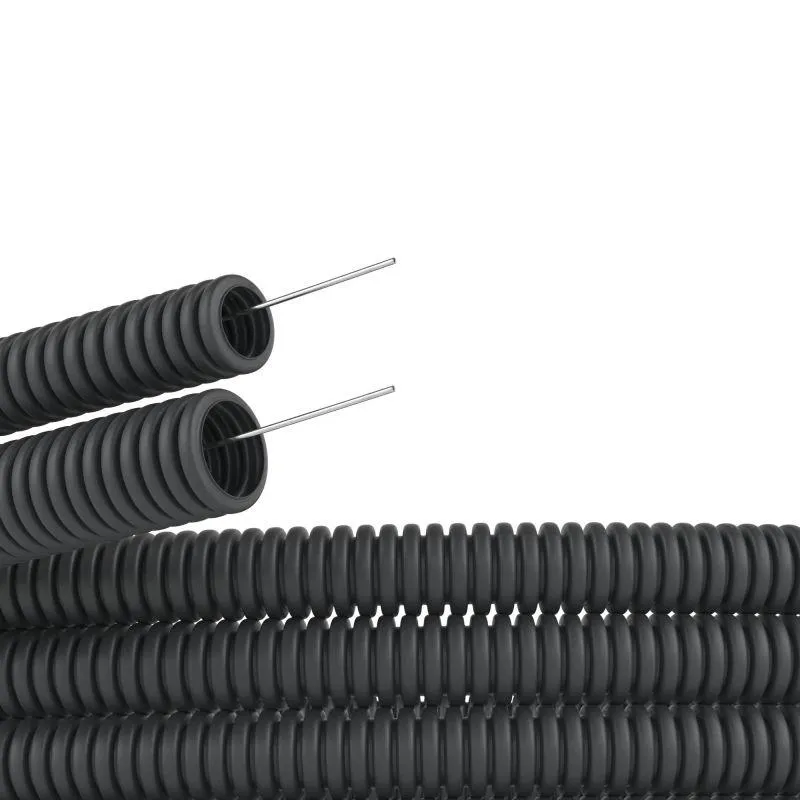 Гибкая гофрированная труба легкой серии предназначена для прокладки в ней кабелей – электрических, телевизионных, компьютерных. Она имеет небольшой вес и проволочную протяжку, которая делает прокладку кабеля в трубе проще. Гибкие гофрированные трубы легкой серии укладываются в штробы стен, стяжку полов (при этом их надо размещать на несгораемых основаниях), а также используются в монолитном бетоностроении. Труба влагоустойчива и обеспечивает степень пыле- и влагозащиты до IP 55 (при использовании специальных аксессуаров). Диаметр – 32 мм. Цвет - черный. Материал – полиэтилен низкого давления (ПНД). Легкие гибкие гофрированные трубы имеют широкий диапазон температур монтажа и эксплуатации: - от -40 °C до +90 °C. Длина - 25 метров.