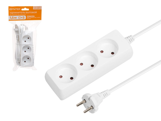 Удлинитель ЮПИТЕР изготовлен только из качественных материалов в соответствии с ГОСТ60884-1 и предназначен для подключения бытовых электрических приборов к электрической сети переменного тока внутри помещения.