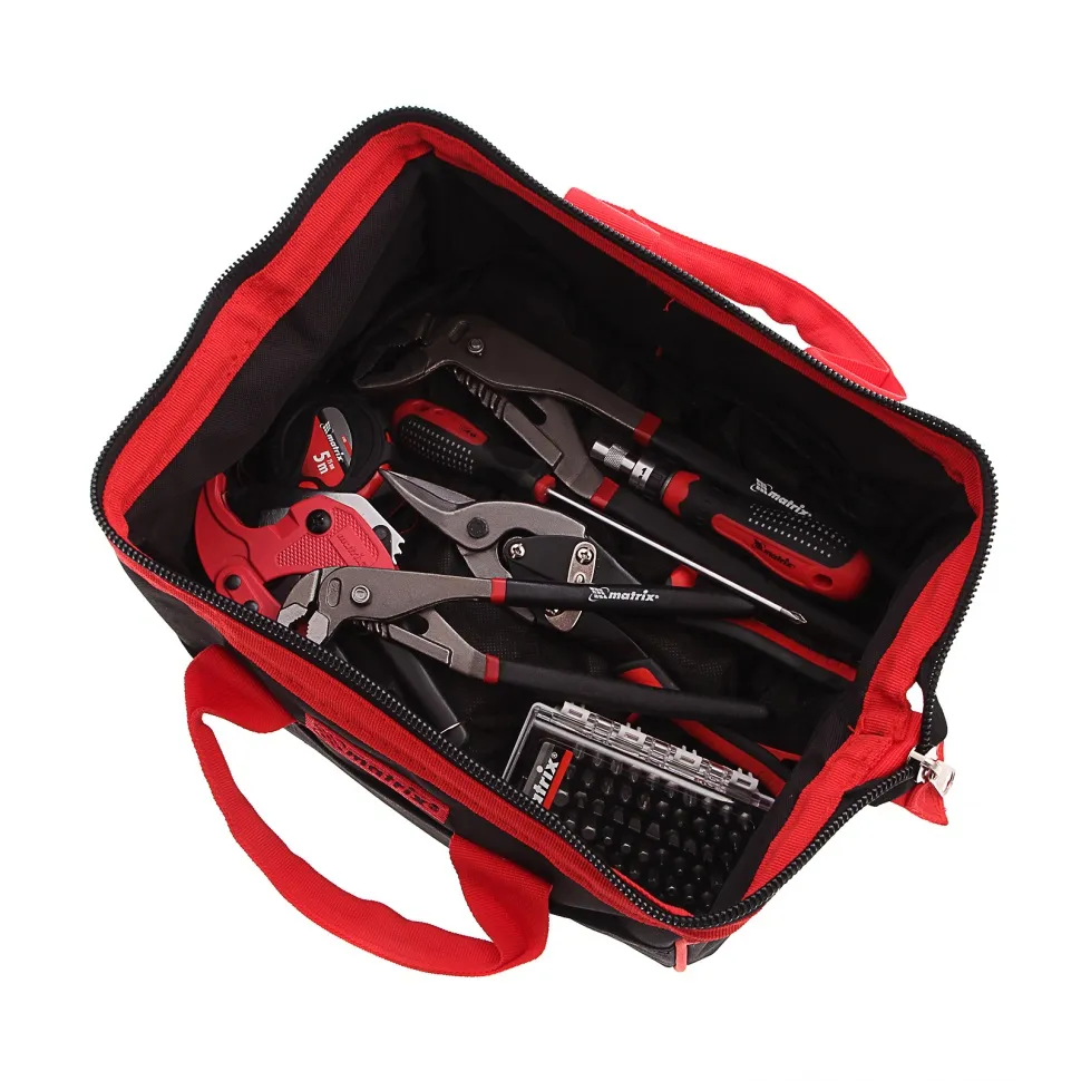 Сумка Matrix 90251 размером 315 х 215 х 225 мм, с 14 карманами, используется для транспортировки и хранения инструментов. 14 карманов и вместительное основное отделение позволяют разместить в сумке инструменты разного размера. Изделие пригодится монтажникам, строителям, будет полезно дома и в поездке.
