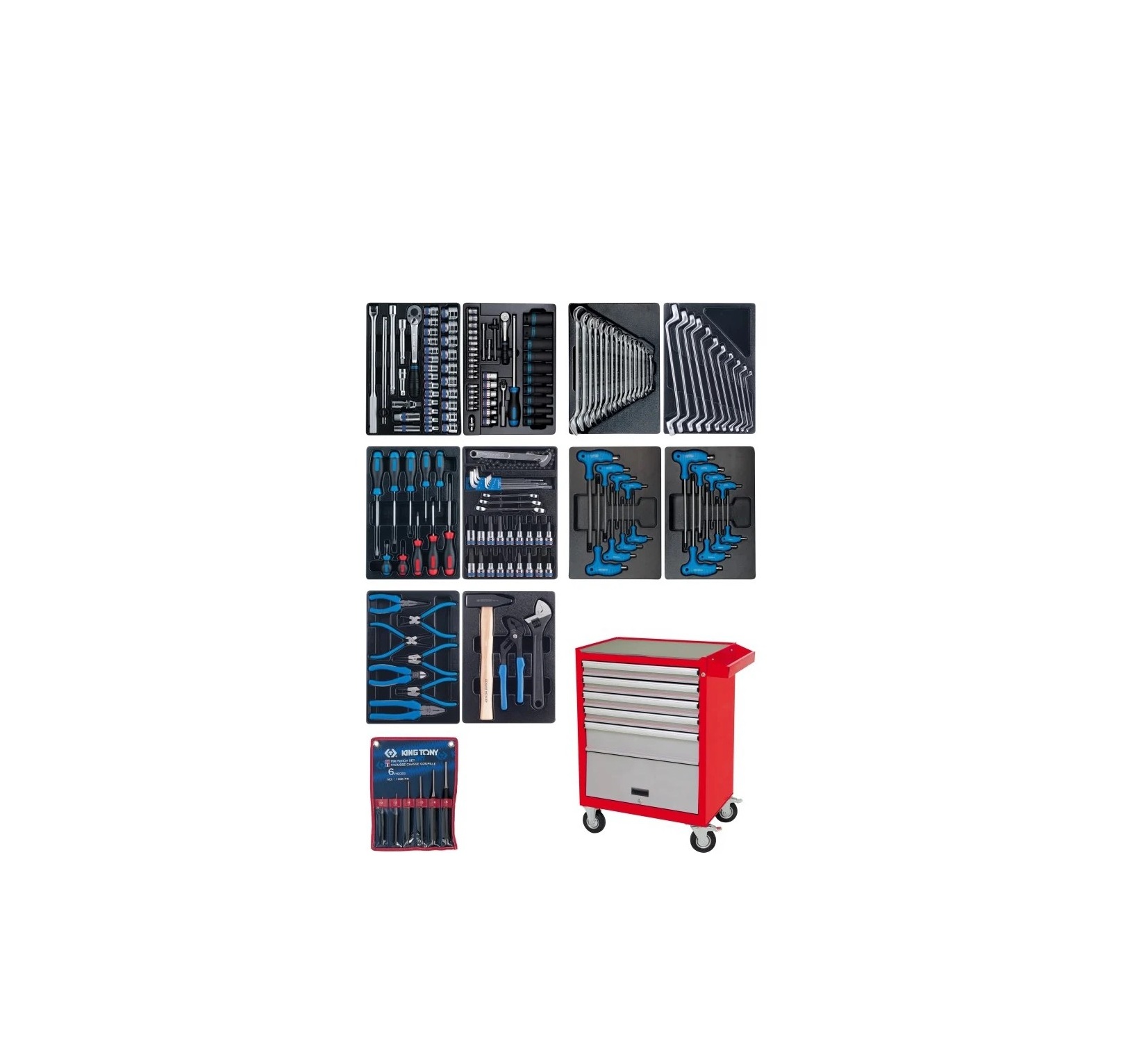 Тележка инструментальная с набором инструмента (173 предмета, 5 полок) King Tony