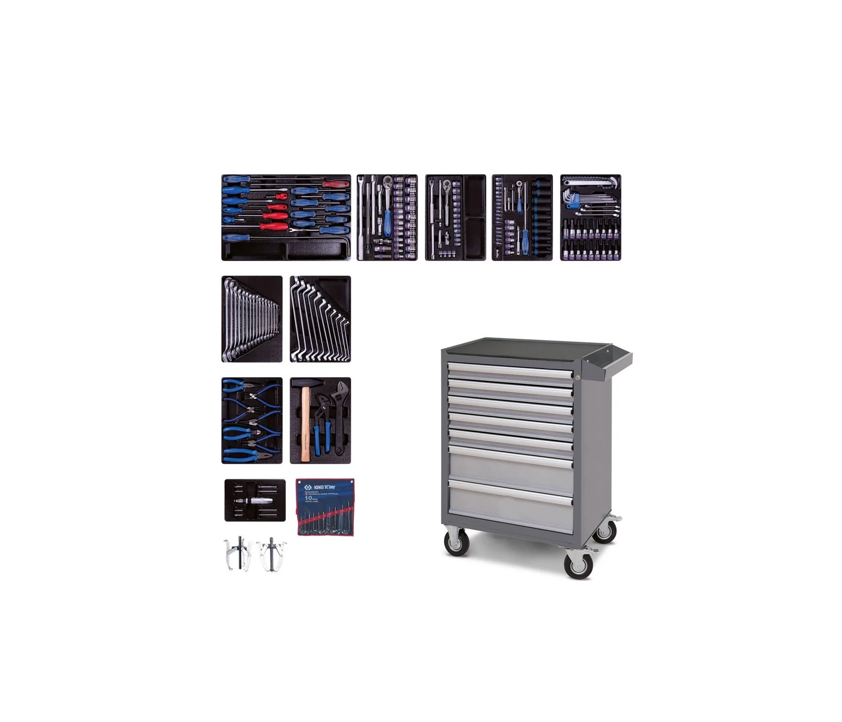 Набор инструментов в инструментальной тележке (204 предмета, 7 полок) King Tony