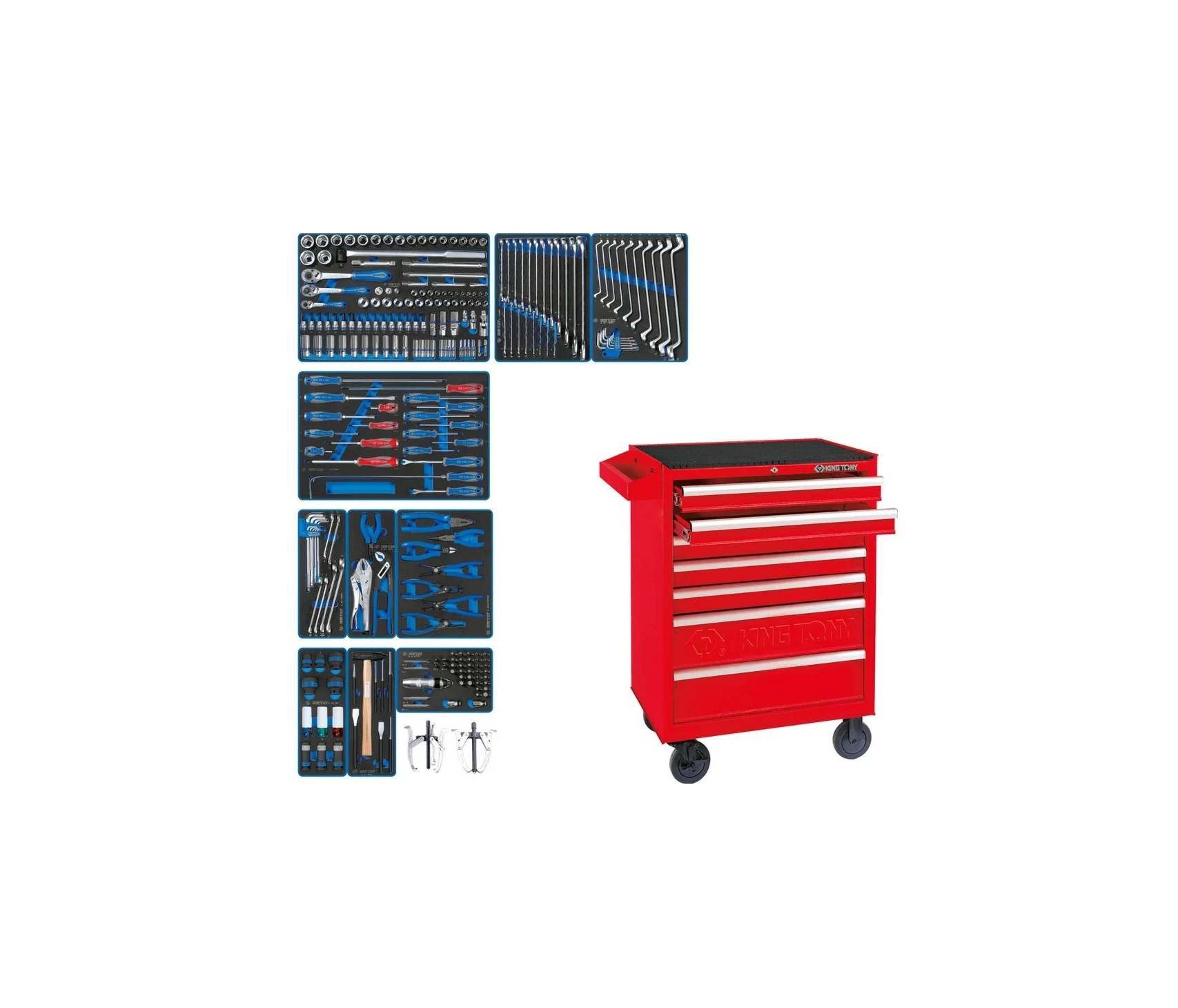 Набор инструментов в инструментальной тележке (251 предмет, 7 полок) King Tony