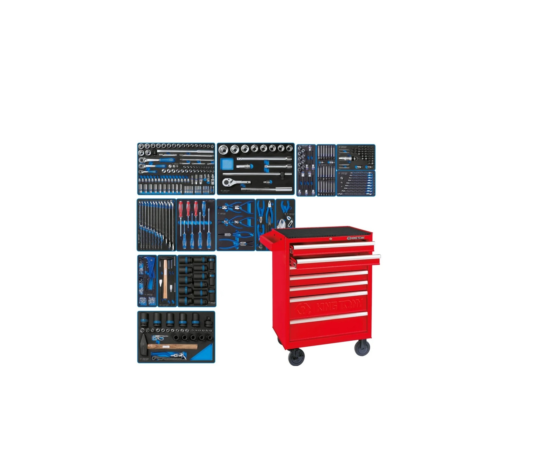 Инструменты марки KING TONY изготовлены из инструментальной легированной хром-ванадиевой стали специального сплава. Технология изготовления ключей и головок включает в себя метод горячей ковки с последующей термообработкой, придающим инструментам особую прочность и высокую надёжность, что даёт возможность профессионального использования набора в условиях авто-сервисной мастерской, станции технического обслуживания, а также на производстве.