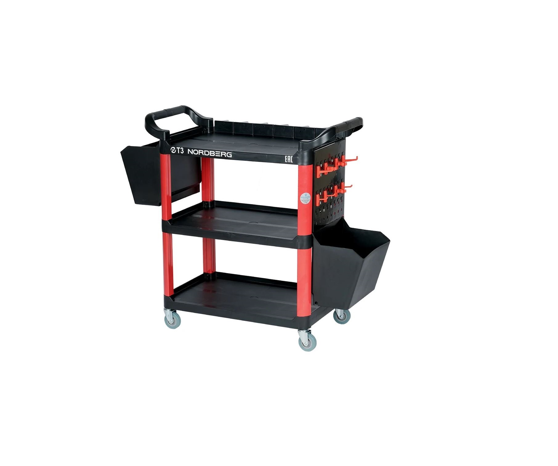 Тележка T3 с пластиковыми полками Nordberg T3 для компактного размещения и доставки необходимого инструмента непосредственно к месту проведения работ.