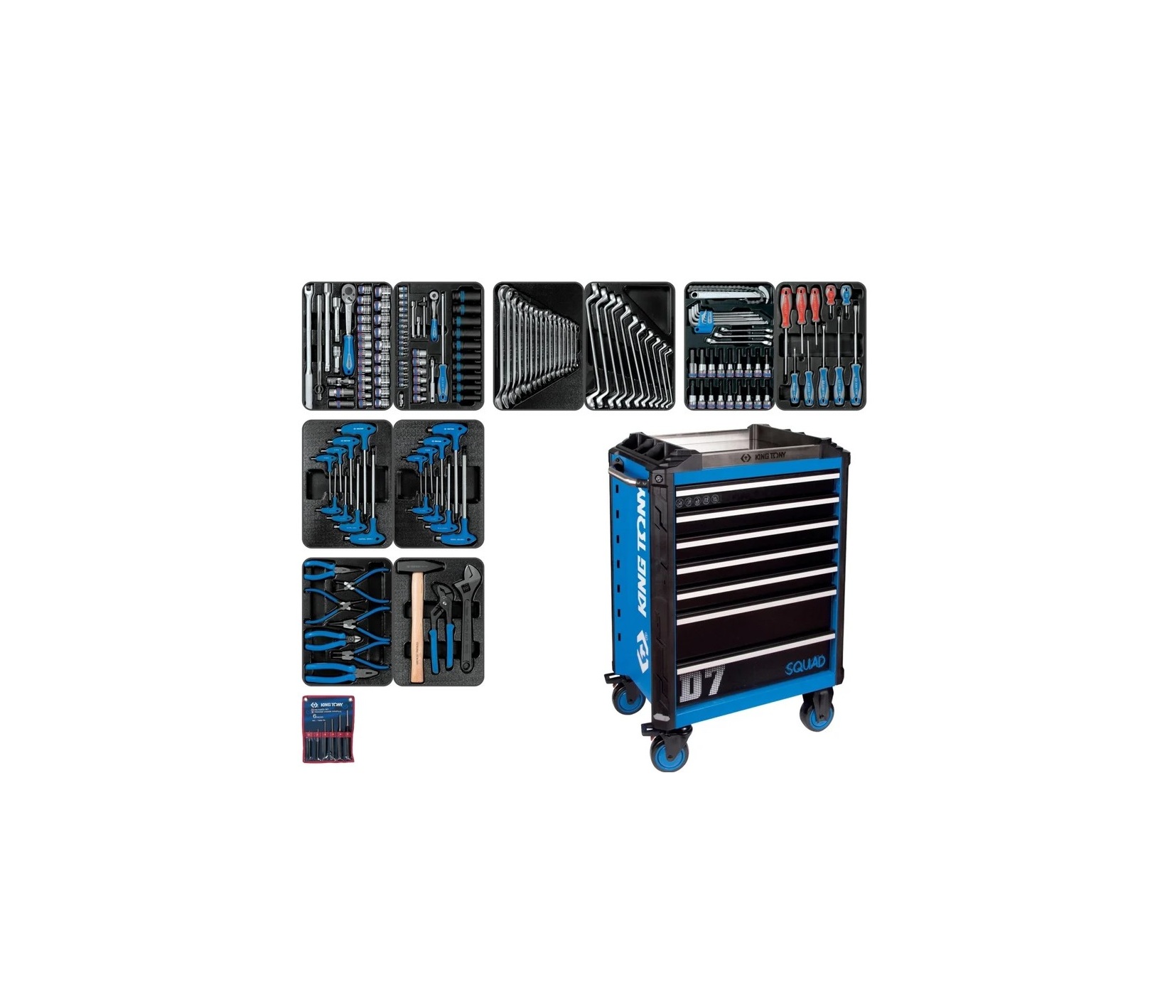 Набор инструментов union 932-000mrd-mt, 173 предмета, 10 ложементов, 5 модулей с тележкой king tony 87sq31-7b-bk
