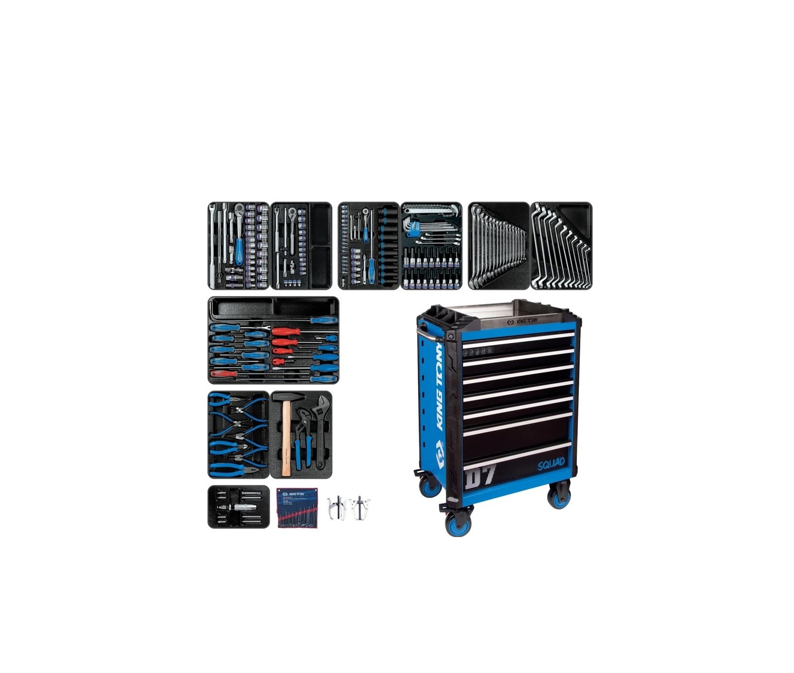 Набор инструментов KING TONY 204 предмета, BASTION, в синей тележке 9SQ31-100MR