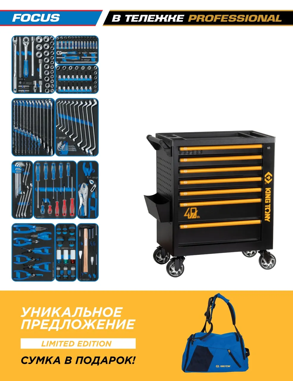 • Тележка инструментальная KING TONY 87G38-7B-P40 серии PROFESSIONAL "40th Anniversary"