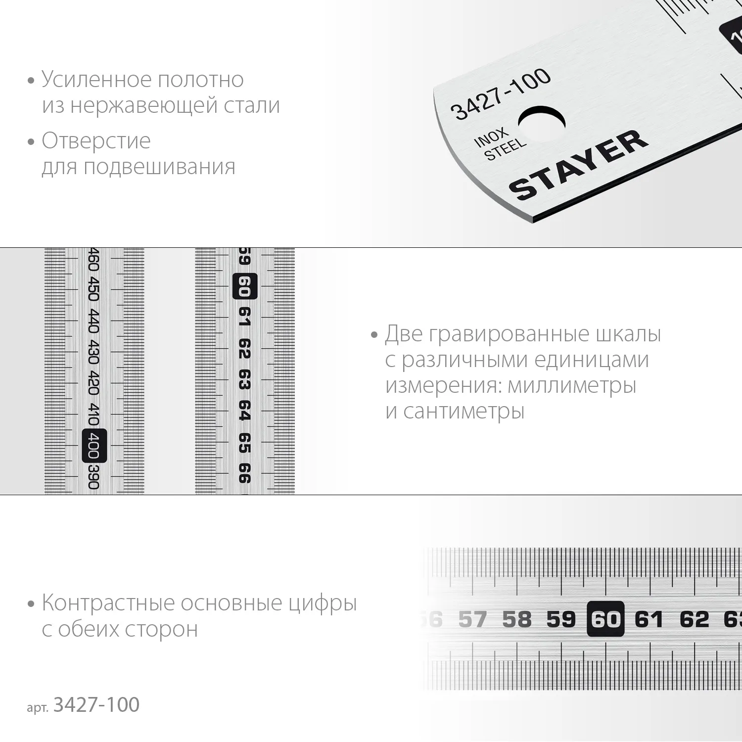 - Усиленное полотно из нержавеющей стали с травлёной шкалой увеличивает срок службы инструмента.