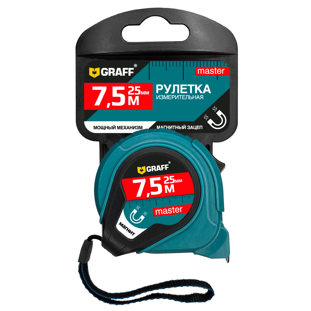 Рулетка измерительная металлическая 7,5м GRAFF с шириной полотна 25мм.