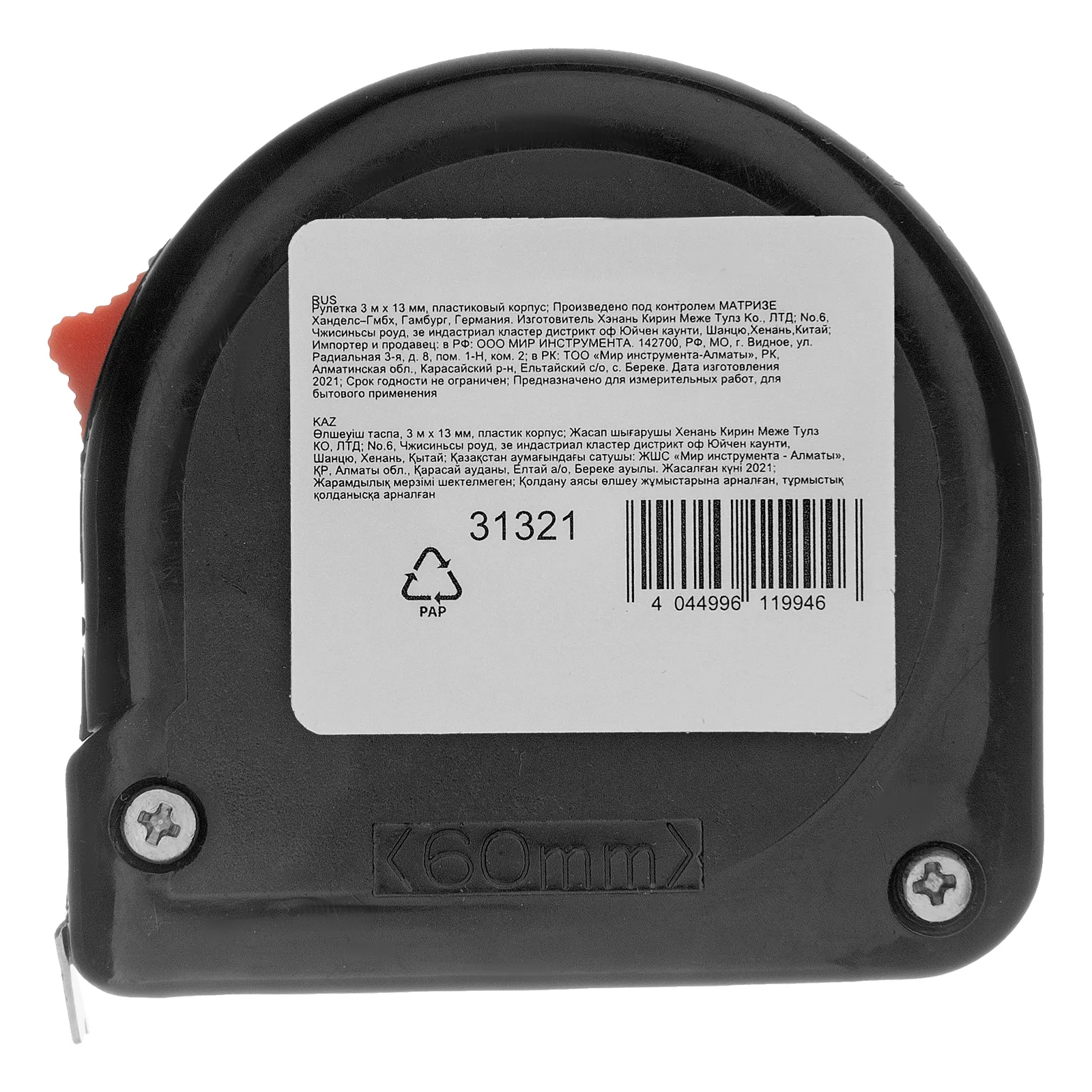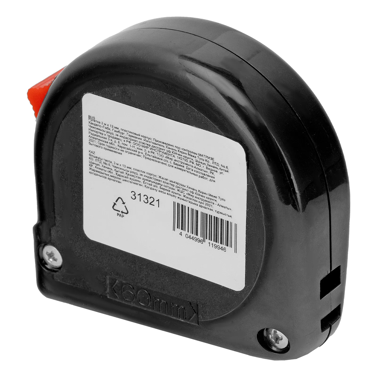 Рулетка в пластиковом корпусе 31321 с полотном 3 м х 13 мм применяется для определения размеров заготовок, мебели, конструкций и т.д. Этот нужный инструмент в арсенале любого мастера пригодится в ходе строительных, ремонтных, монтажных работ.