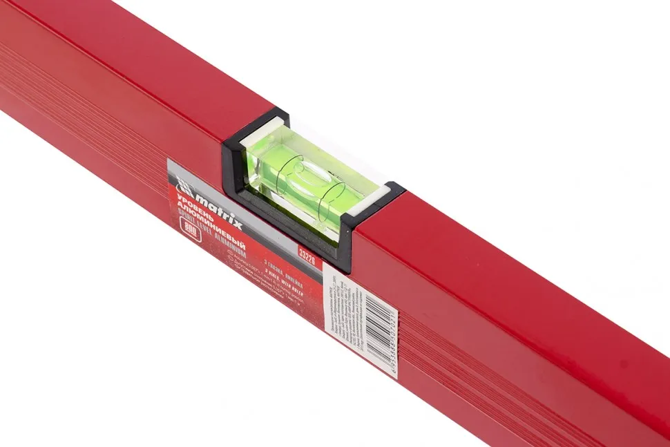 Алюминиевый уровень Matrix 33226 длиной 800 мм, красного цвета, с 3 глазками и линейкой, пригодится при проведении строительных, ремонтных и монтажных работ. С ним повышается точность работы, что позволяет добиться качественного результата. Три колбы рассчитаны на проверку горизонтали, вертикали и угла 45 градусов, погрешность равна 1 мм/м (0,057 градуса).Для определения отклонения вертикали 90 градусов необходимо использовать пузырьковую ампулу только в верхнем положении уровня. Только базовая поверхность является рабочей (противоположная ампуле 180 градусов).ПреимуществаДолговечность уровня достигается за счет корпуса из упрочненного алюминиевого профиля.Торцевые заглушки предотвращают попадание мусора внутрь инструмента.Окрашенный корпус не подвержен воздействию агрессивных веществ.Мерная шкала на корпусе уровня позволяет использовать его в качестве линейки.