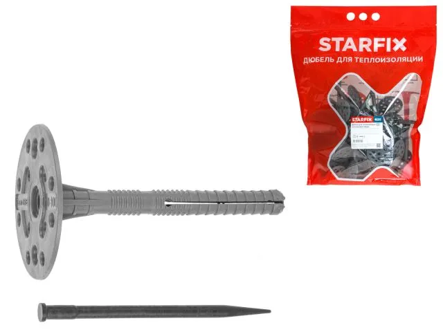 Дюбель для теплоизоляции 10х100 мм с пласт. гвоздем (50 шт в дой-паке) STARFIX наличный и безналичный расчет