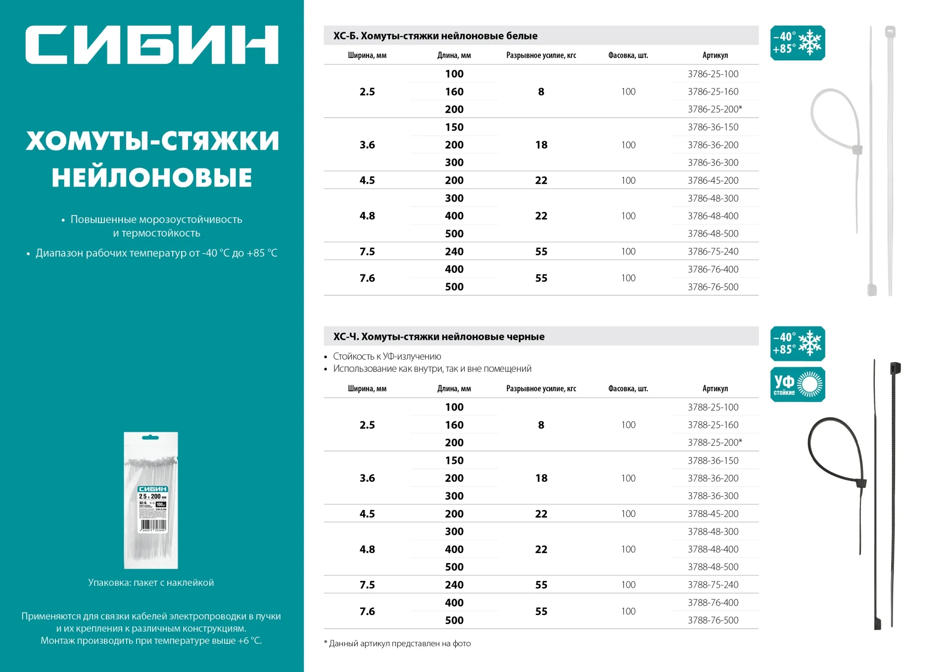 Хомуты-стяжки черные ХС-Ч, 2.5 х 160 мм, 100 шт, нейлоновые, СИБИН наличный и безналичный расчет