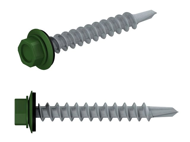 Саморез кровельный 4.8х29 мм цинк, шайба с прокл., PT1, RAL 6002 (200 шт в карт. уп.) STARFIX (по дереву, цвет лиственно-зеленый)