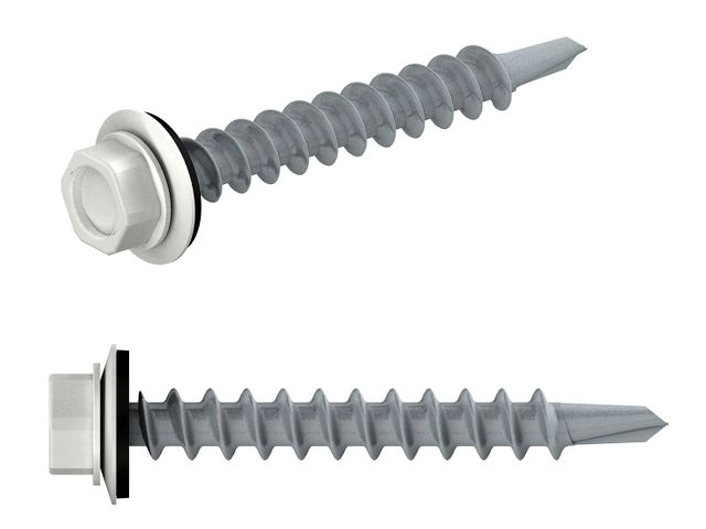 Саморез кровельный 4.8х19 мм цинк, шайба с прокл., PT3, RAL 9003 (100 шт в пласт. конт.) STARFIX (по металлу, цвет сигнальный белый)