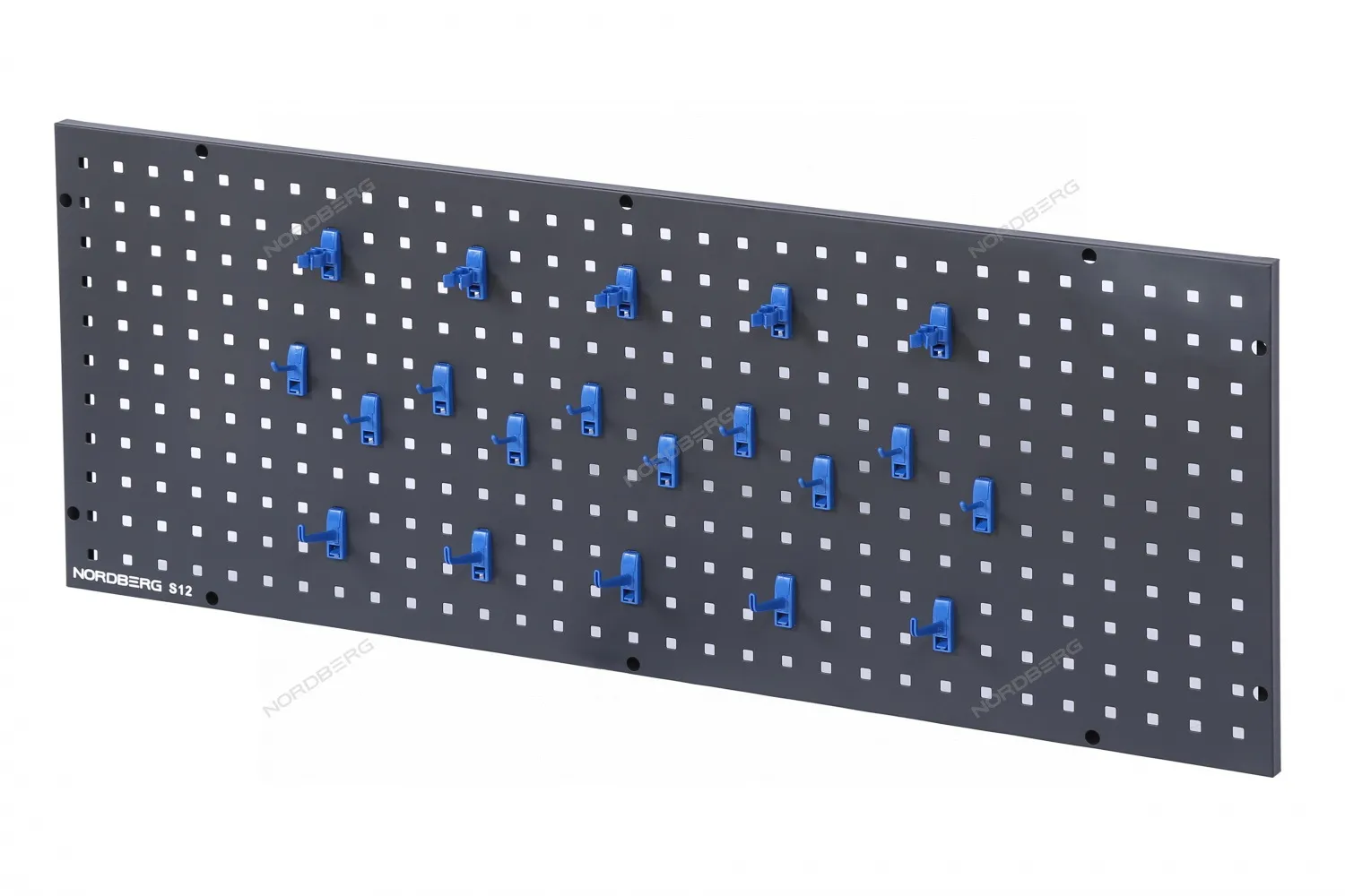 Перфорированная панель 1200x450 мм с набором крюков NORDBERG S12 – дополнительный элемент для автосервисов, который расширяет рабочее пространство и упрощает распределение инструмента.