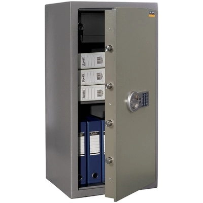 Внешние размеры сейфа: 900х440х380 (ВхШхГ, мм) Внутренние размеры сейфа: 852х392х298 (ВхШхГ, мм) Замок: кодовый электронный Сейф снабжен полкой и трейзером Вес: 154 кг Объем: 84/15 л