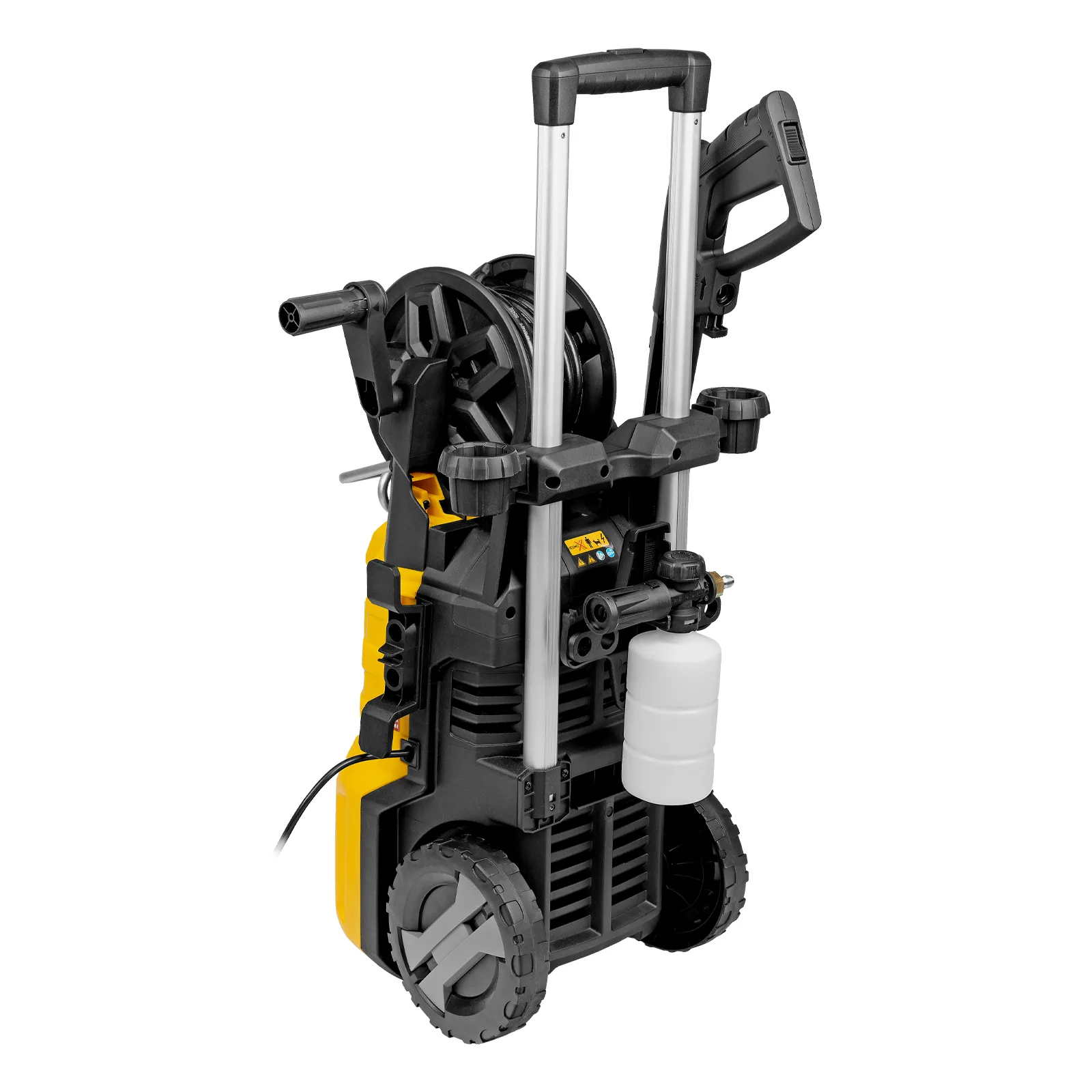 | Комплектация | Мойка высокого давления, Барабан для шланга (установлен), Шланг высокого давления (установлен), Пистолет, Удлинитель пистолета, Сменные сопла 3 шт, Пеногенератор с бачком для моющего средства, Входной штуцер с фильтром, Быстросъемный коннектор шланга, кронштейн-держатель пистолета, Кронштей сетевого кабеля, Игла для прочистки сопла, Комплект крепежа, Инструкция с гарантийным талоном |