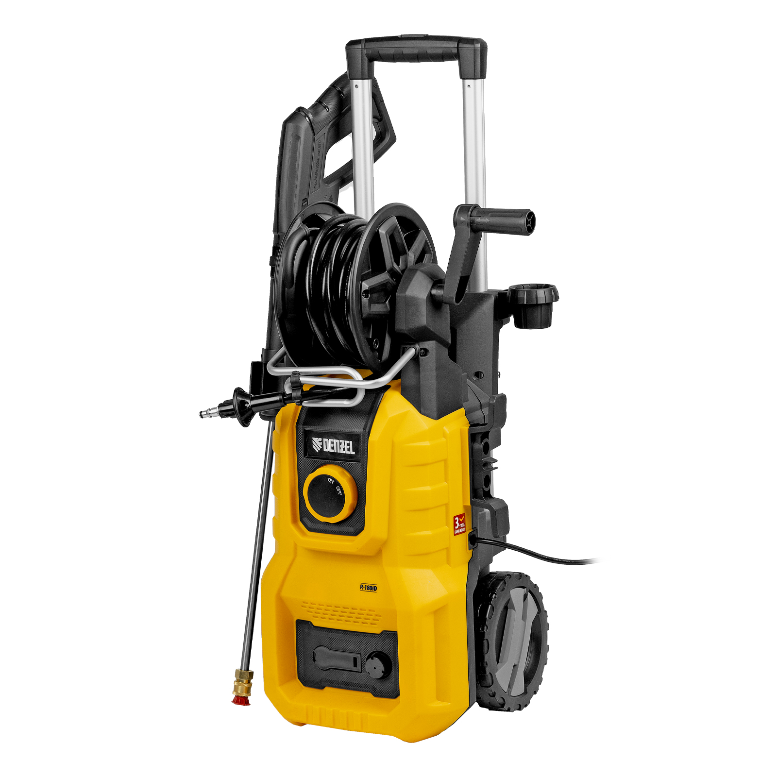 Комплектация | Мойка высокого давления, Барабан для шланга (установлен), Шланг высокого давления (установлен), Пистолет, Удлинитель пистолета, Сменные сопла 3 шт, Пеногенератор с бачком для моющего средства, Входной штуцер с фильтром, Быстросъемный коннектор шланга, кронштейн-держатель пистолета, Кронштей сетевого кабеля, Игла для прочистки сопла, Комплект крепежа, Инструкция с гарантийным талоном |