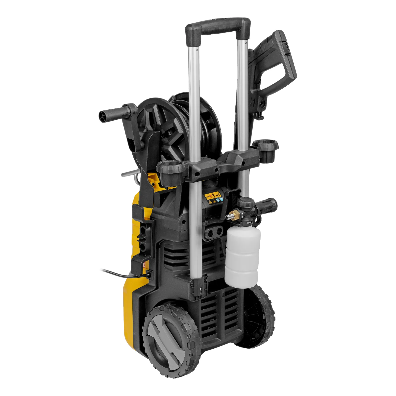 | Комплектация | Мойка высокого давления, Барабан для шланга (установлен), Шланг высокого давления (установлен), Пистолет, Удлинитель пистолета, Сменные сопла 3 шт, Пеногенератор с бачком для моющего средства, Входной штуцер с фильтром, Быстросъемный коннектор шланга, кронштейн-держатель пистолета, Кронштей сетевого кабеля, Игла для прочистки сопла, Комплект крепежа, Инструкция с гарантийным талоном |