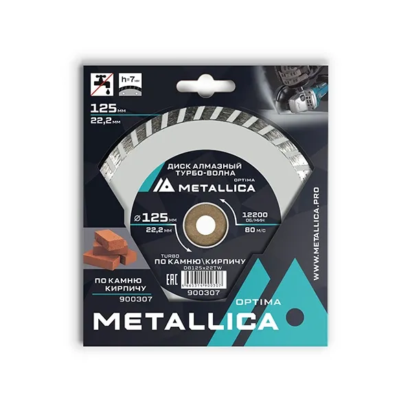 Диск алмазный турбо-волна METALLICA Optima 125x22,2 мм, H=7 мм по камню, кирпичу. В кор.