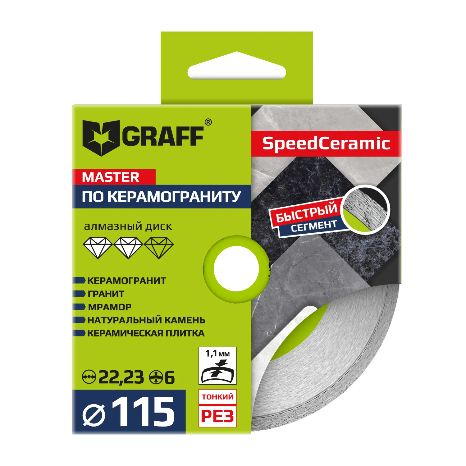 Алмазный диск по керамограниту диаметром 115 мм Speedceramic GRAFF серия "Master" для болгарки (УШМ).