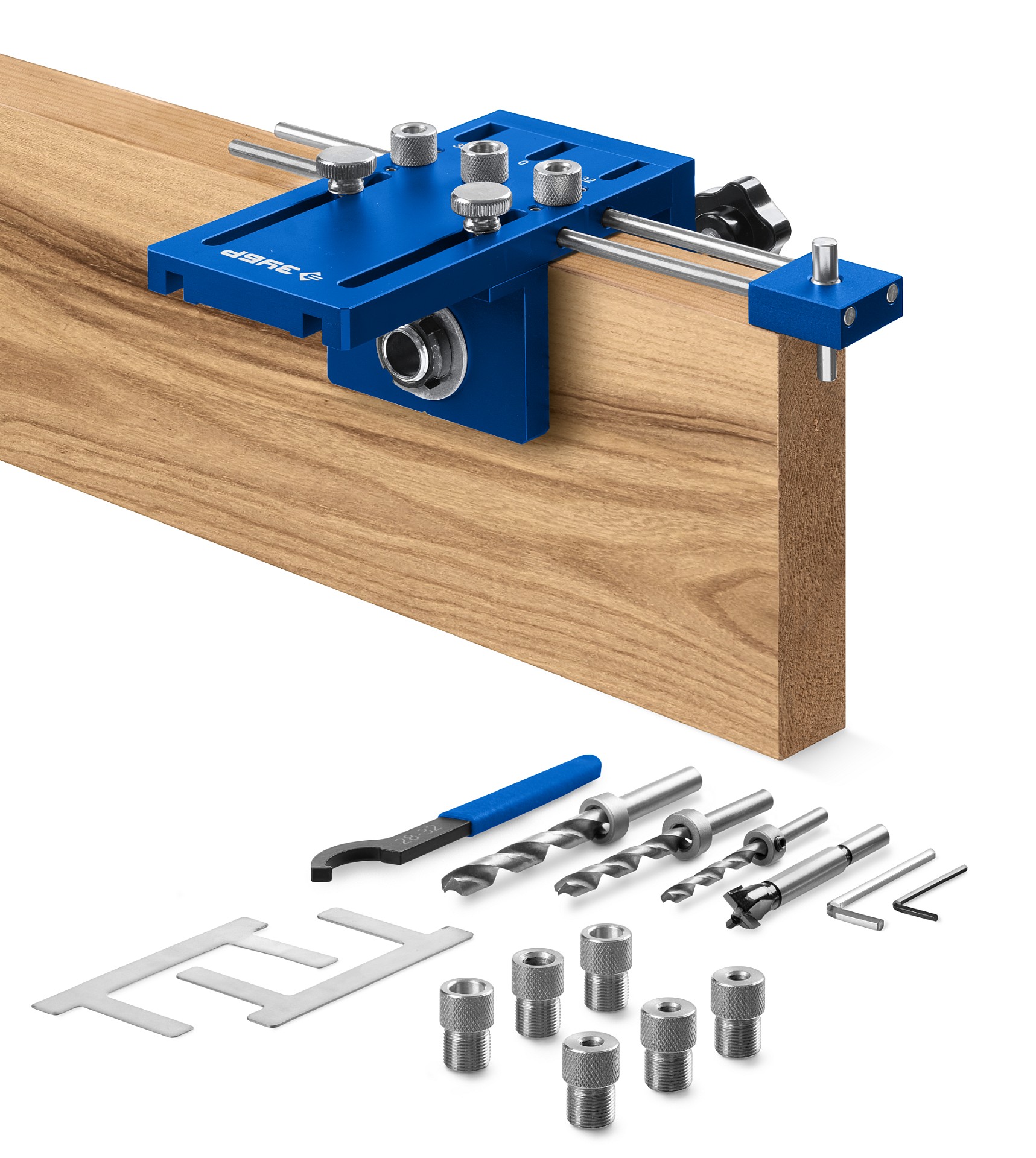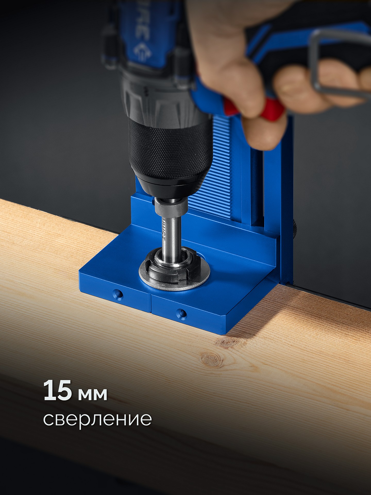 Мультифункциональный кондуктор позиционирует сверло, обеспечивая точность сверления отверстий под шканты и эксцентриковые стяжки. Использование кондукторов значительно ускоряет и облегчает процесс соединения деревянных деталей.