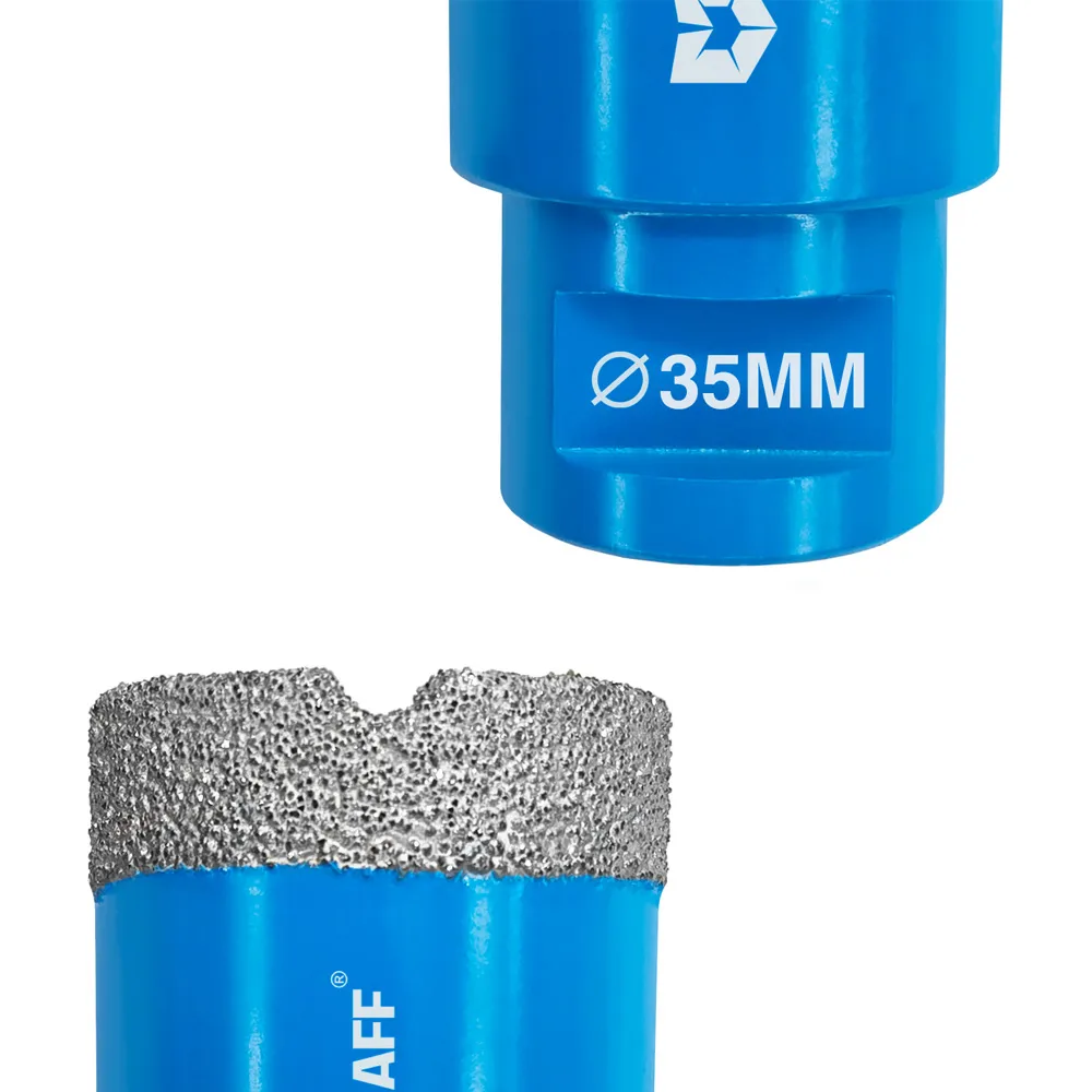 Высококачественная алмазная коронка GRAFF предназначена для быстрого и точного сверления отверстий в таких материалах, как мрамор, керамика, гранит, стекло, кварцевый камень, все виды керамической плитки и т. д.
