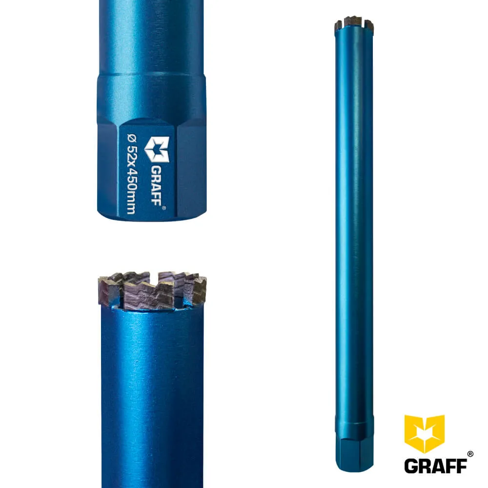 Коронка алмазная 52x12 мм 1 1/4" GRAFF для сверления бетона и армированного бетона в буровых установках изготовлена методом лазерной сварки.