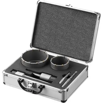 При прокладке коммуникаций в строящемся здании не обойтись без коронок по бетону. Они позволяют без труда получать отверстия среднего или большого диаметра в самых прочных материалах. Коронки имеют твердосплавные зубья из сплава ВК85, усовершенствованную систему крепления сверла на конус и резьбовое соединение с державкой М22.