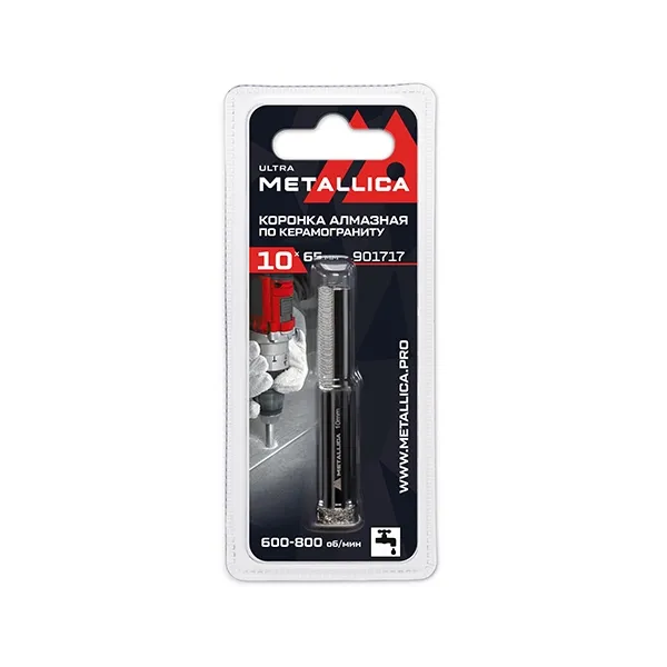 • Имеет съемное твердосплавное направляющее сверло* по стеклу и облицовочной плитке и шестигранный ключ для его фиксации