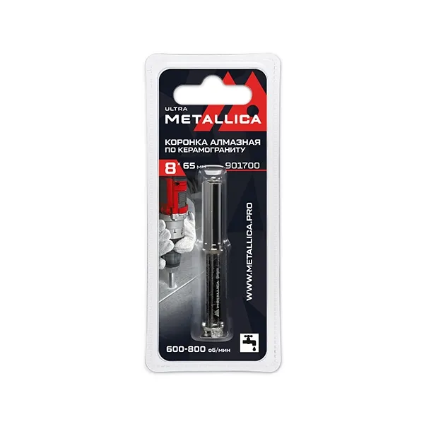 • Имеет съемное твердосплавное направляющее сверло* по стеклу и облицовочной плитке и шестигранный ключ для его фиксации