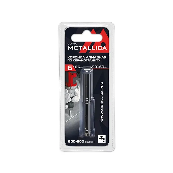 • Имеет съемное твердосплавное направляющее сверло* по стеклу и облицовочной плитке и шестигранный ключ для его фиксации