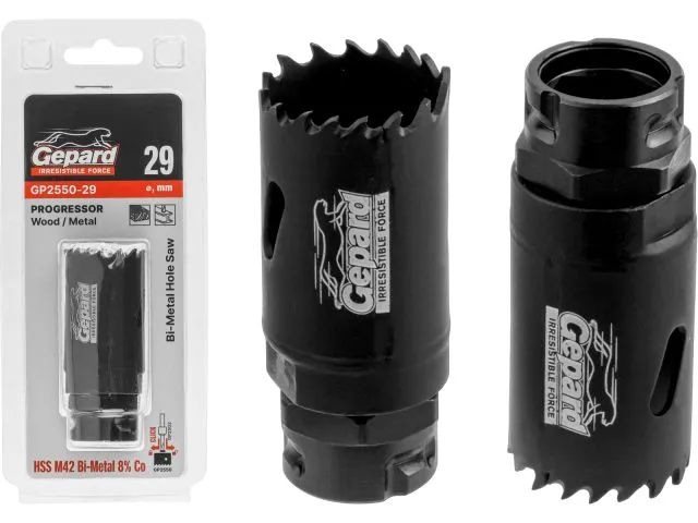 Материал режущей части коронки: HSS M42 Bi-Metal 8% Co (быстрорежущая сталь c содержанием кобальта 8%), 65-68 HRC;