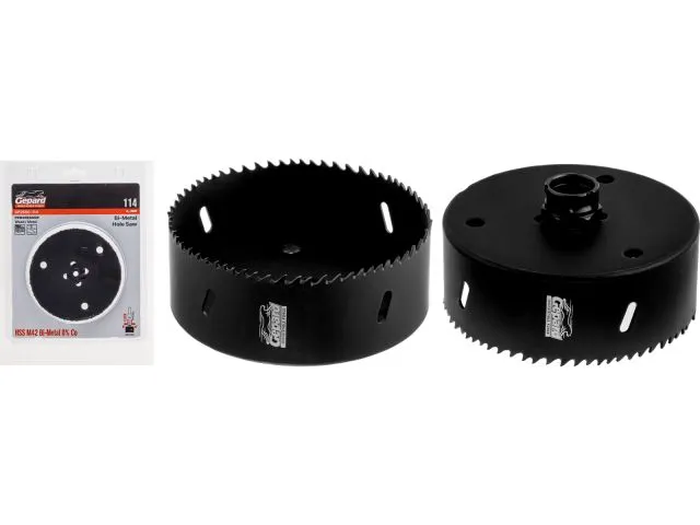 Материал режущей части коронки: HSS M42 Bi-Metal 8% Co (быстрорежущая сталь c содержанием кобальта 8%), 65-68 HRC;