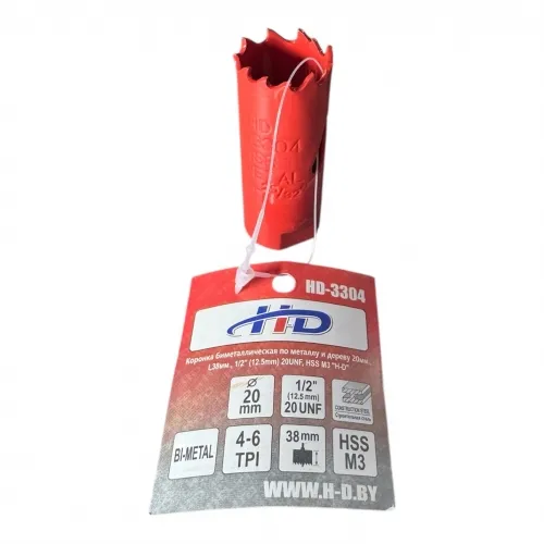 Коронка биметаллическая по металлу и дереву 20мм., L38мм., 1/2"-20UNF, HSS M3 "H-D" наличный и безналичный расчет