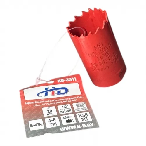 Коронка биметаллическая по металлу и дереву 29мм., L38мм., 1/2"-20UNF, HSS M3 "H-D" наличный и безналичный расчет