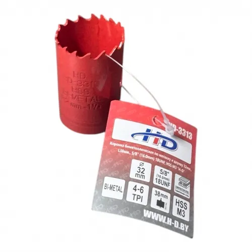 Коронка биметаллическая по металлу и дереву 32мм., L38мм., 5/8"-18UNF, HSS M3 "H-D" наличный и безналичный расчет