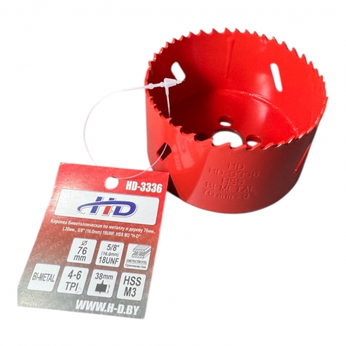 Коронка биметаллическая по металлу и дереву 76мм., L38мм., 5/8"-18UNF, HSS M3 "H-D" наличный и безналичный расчет