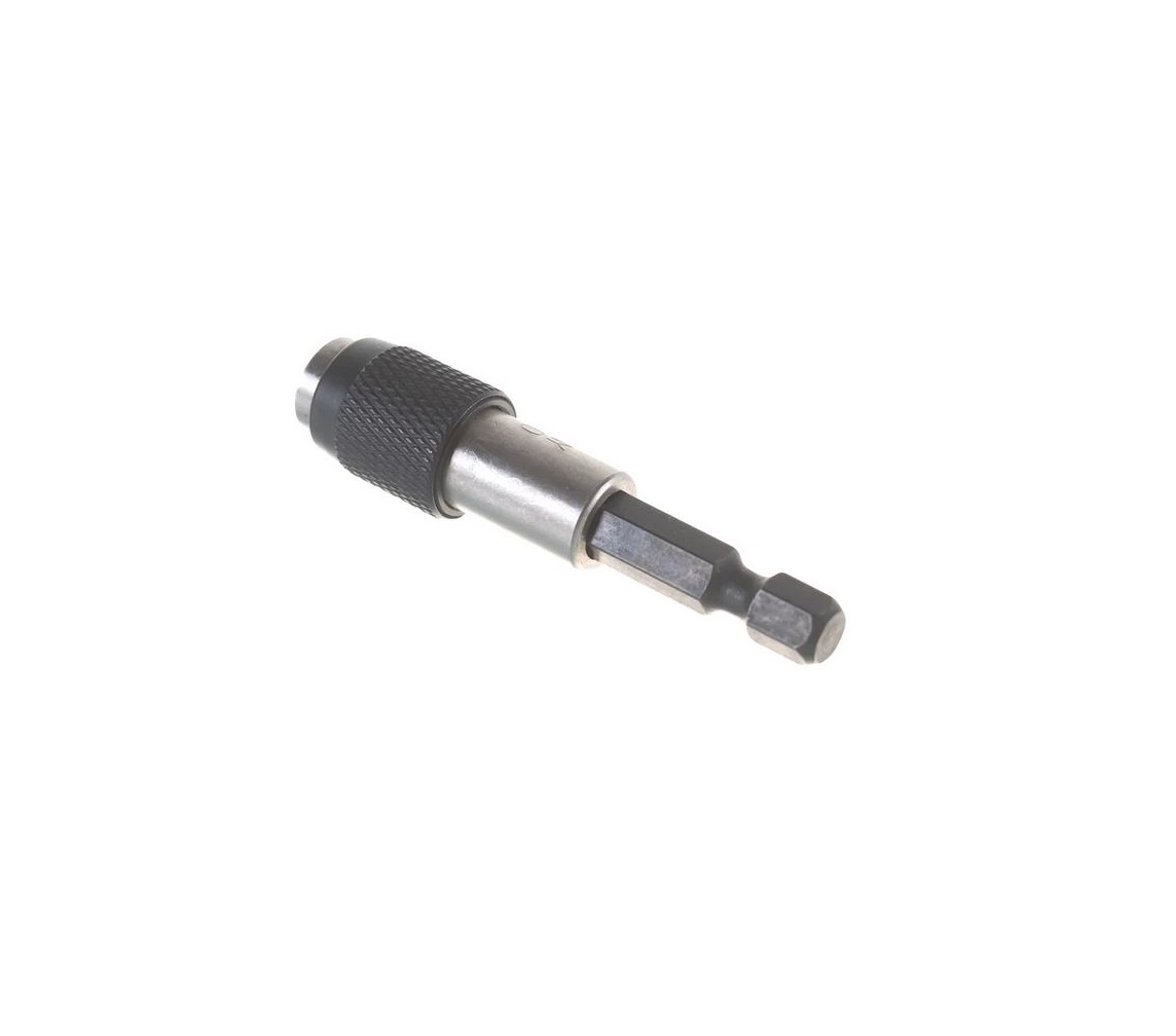 Является переходником, одна часть которого зажимается в шуруповерт, другая фиксирует биту с помощью магнита.