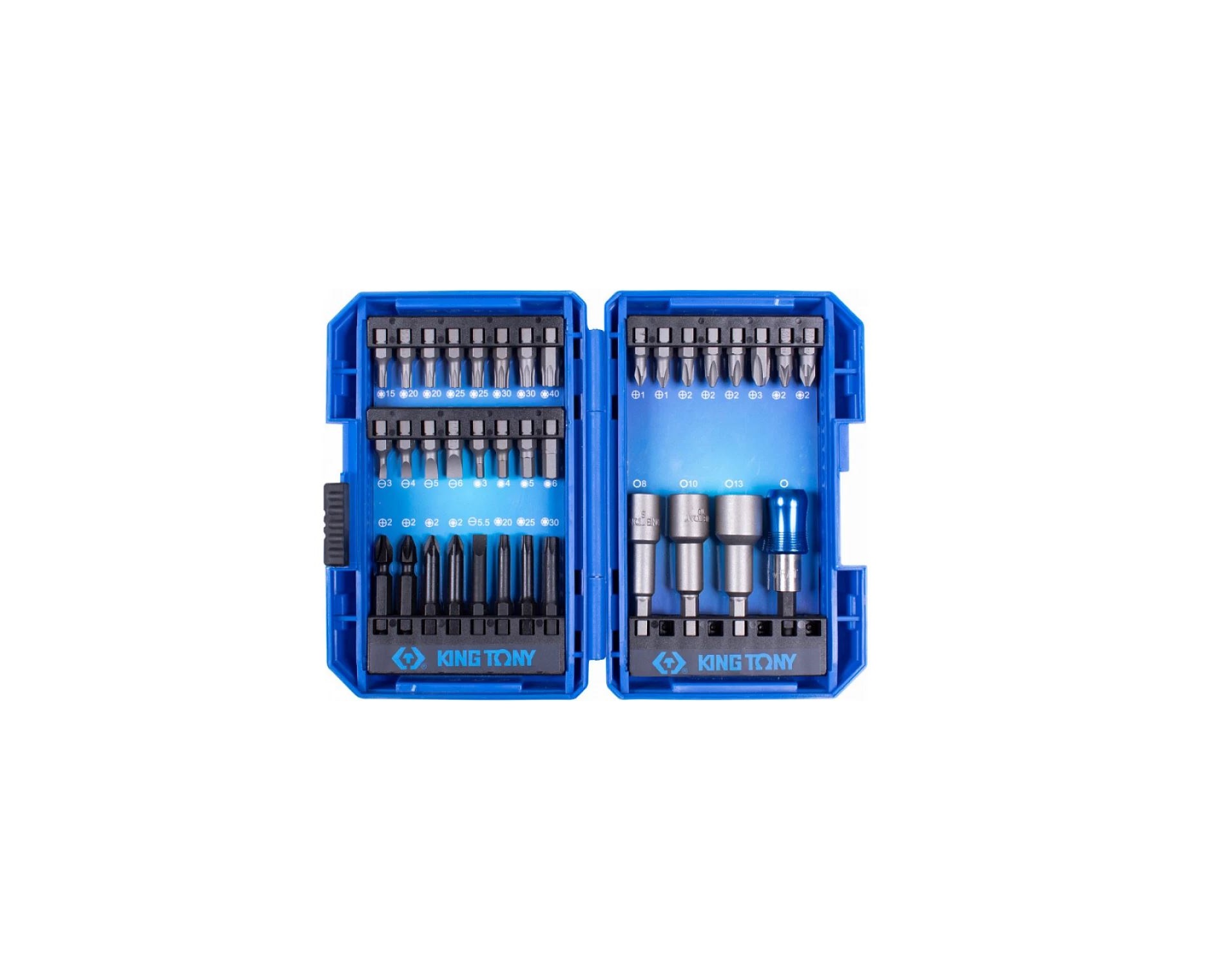 Предметы набора расположены в прочном кейсе, каждый в своей ячейке для удобства и быстрого поиска. Кейс изготовлен из пластика ABS – легкого материала, обладающего высокими прочностными характеристиками, стойкостью к маслам и растворителям. Кейс удобен для хранения вставок, а также защитит от их утери.