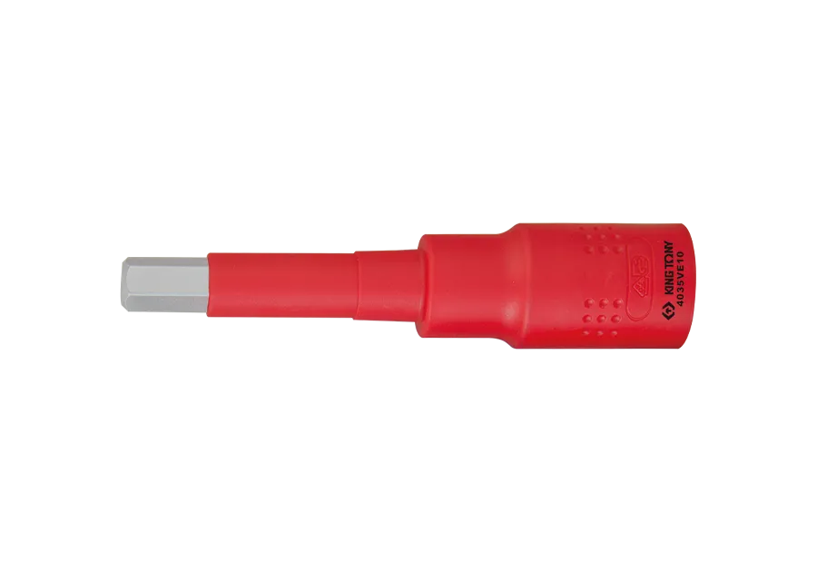Торцевая насадка King Tony предназначена для откручивания и закручивания резьбового крепежа с внутренним шестигранным профилем размером 4/5/6/8/10 мм с использованием инструментов, имеющих посадочный квадрат 1/2". Применяется во время монтажно-демонтажных работ на оборудовании под напряжением до 1000 В, на линиях электропередачи, при ремонте и сервисном обслуживании электромобилей, электробусов и другой техники, в строительстве и т.д.