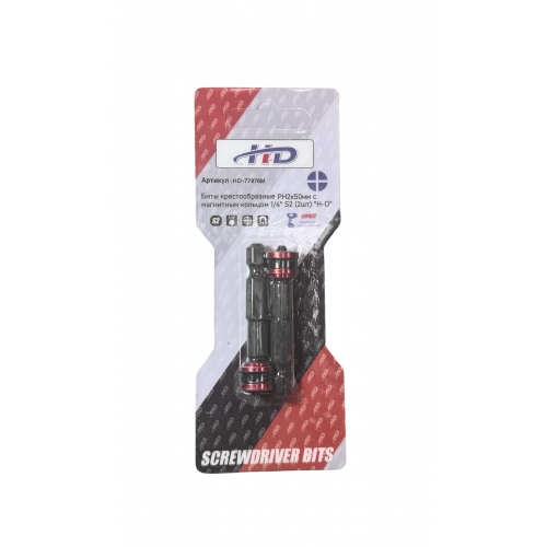 Биты крестообразные PH2х50мм с магнитным кольцом 1/4" S2 (2шт) "H-D" наличный и безналичный расчет