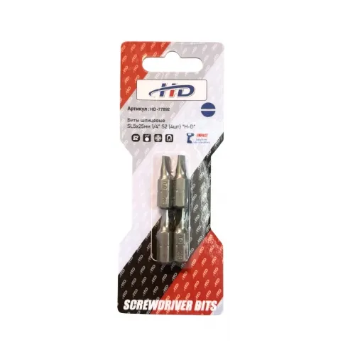Биты шлицевые SL5х25мм 1/4" S2 (4шт) "H-D" наличный и безналичный расчет