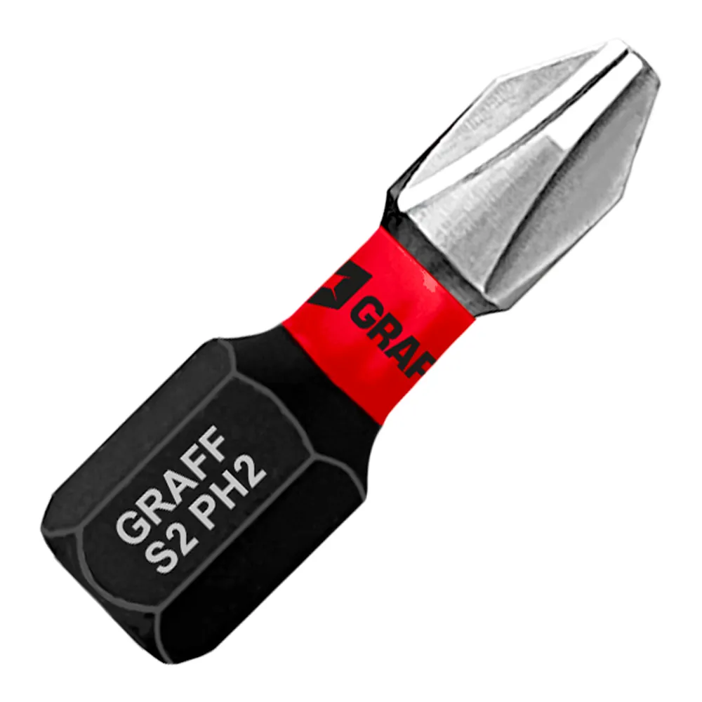 Биты GRAFF серии IMPACT PH 2x25 mm специально разработаны для тяжелых условий, особенно при работе с импульсными шуруповертами и гайковертами.