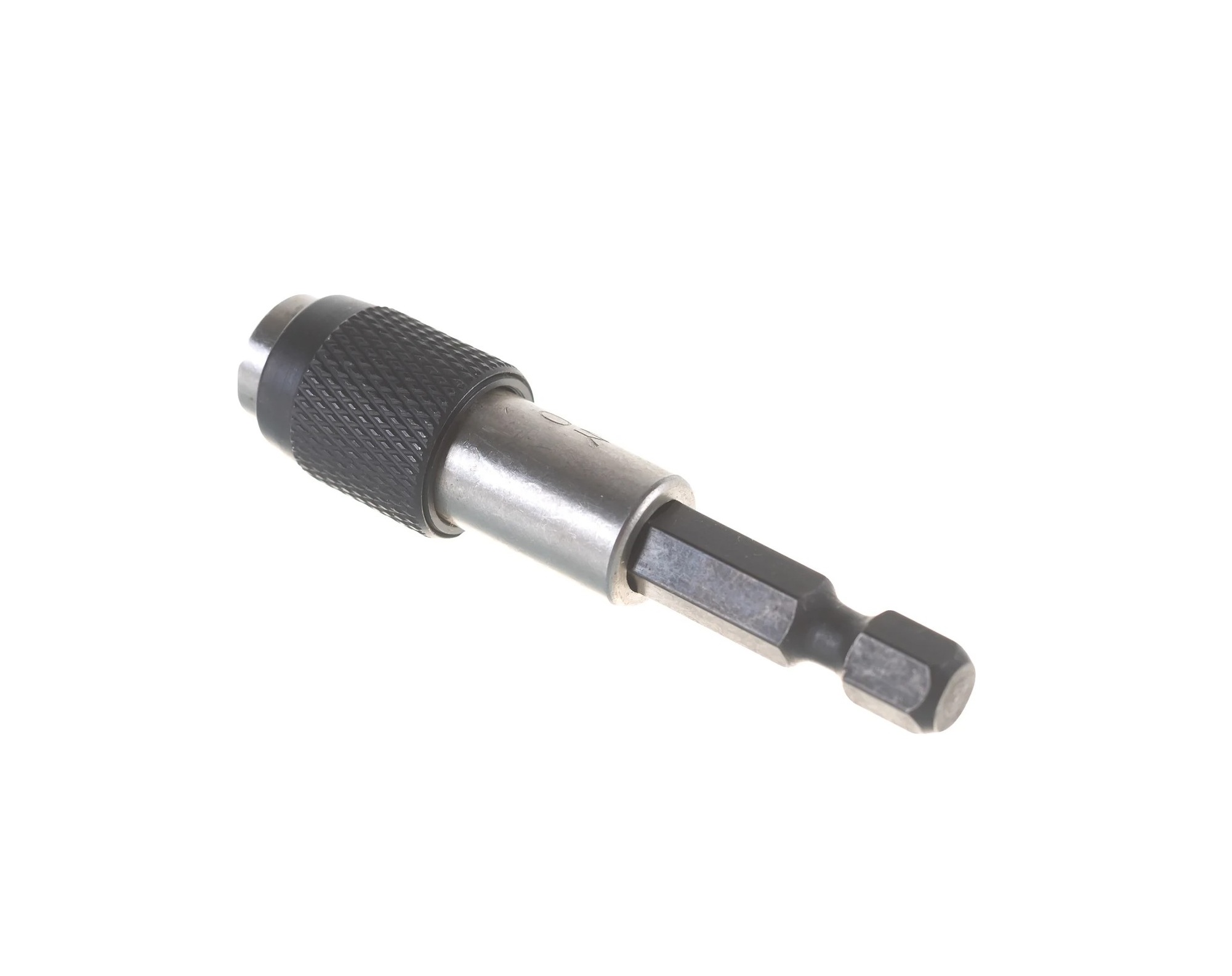 Является переходником, одна часть которого зажимается в шуруповерт, другая фиксирует биту с помощью магнита.