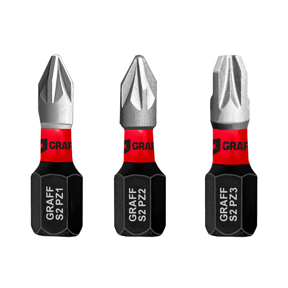 Биты набором из 3 штук PZ1, PZ2, PZ3 длина 25 мм GRAFF серия "Expert"
