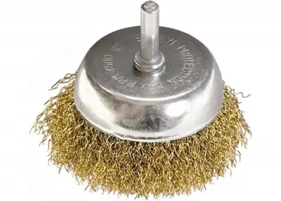 Щетка для дрели «чашка» Matrix 74477 диаметром 65 мм, со шпилькой, с щетиной из латунированной витой проволоки, используется для очистки металлических, деревянных и пластиковых поверхностей от незначительных загрязнений и остатков лакокрасочных покрытий. Помогает подчеркнуть структуру материала или придать ему шероховатость. Форма чашки позволяет обрабатывать плоские участки большой площади. Хвостовик диаметром 6 мм устанавливается в патрон электродрели, поддерживающей скорость 4500 об/мин. Во время работы нужно использовать средства индивидуальной защиты — респиратор, очки, наушники, спецодежду и обувь.ПреимуществаВитая проволока сохраняет свою форму после снятия нагрузок, поэтому щетка подходит для интенсивного использования.Латунированное покрытие щетины и цинковое — корпуса обеспечивают защиту щетки от коррозии.Оснастка изготовлена на крупном заводе со строгим контролем качества на всех этапах производства, что подтверждает ее надежность.Щетка пригодится как профессиональным, так и домашним мастерам.